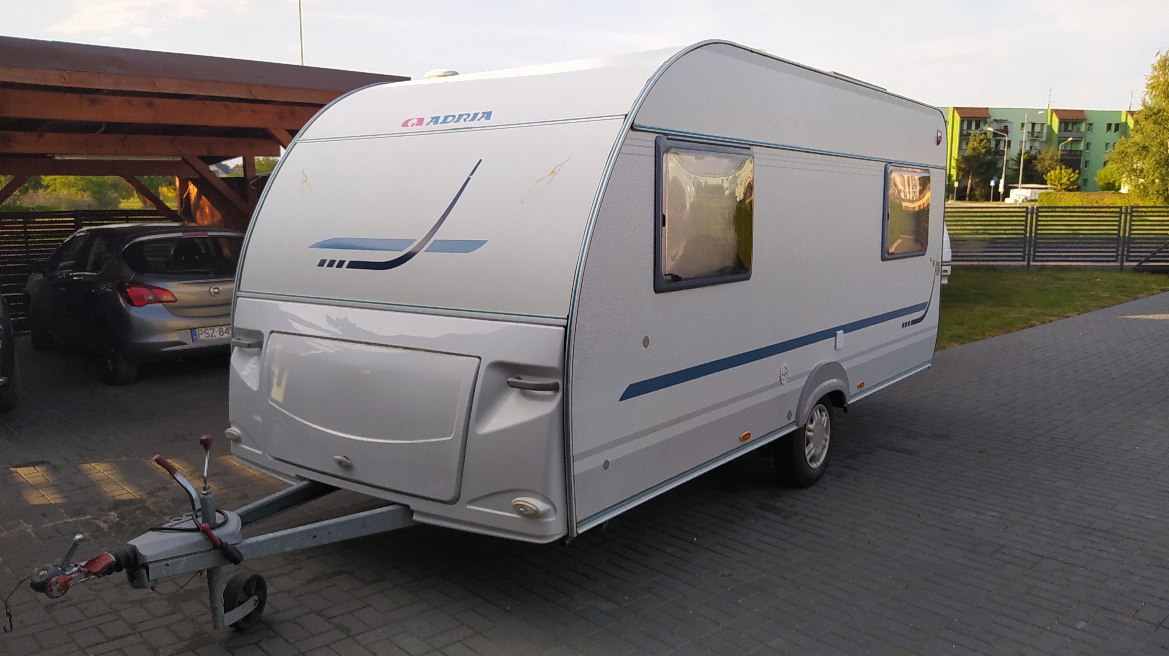 Przyczepa zarejestrowana z ważnym OC i przeglądem. 1350 DMC. Sucha, czysta, szczelna, 4-5 osobowa z dużym przedsionkiem głębokim na 3 metry ,panelem solarnym, wc, bagażnikiem rowerowym. Długość przyczepy z zewnątrz wynosi 5.4m + zaczep 1,3m i szerokość 2,20m. Z przodu sypialnia dwa pojedyncze łóżka 200 x 90 z których można zrobić jedno duże łóżko 200 x 210 oddzielane od reszty zasłonką. Na środku kuchnia , łazienka z toaletą opróżnianą z zewnątrz, oraz szafa z piecem gazowym do ogrzewania .Z tył salon ,jadalnia którą przekształca się w łóżko 200cm x 95cm. Bardzo ładne rozmieszczenie, duża ilość szafek i schowków.W przypadku OLX po więcej zdjęć proszę przejść na OTOMOTO